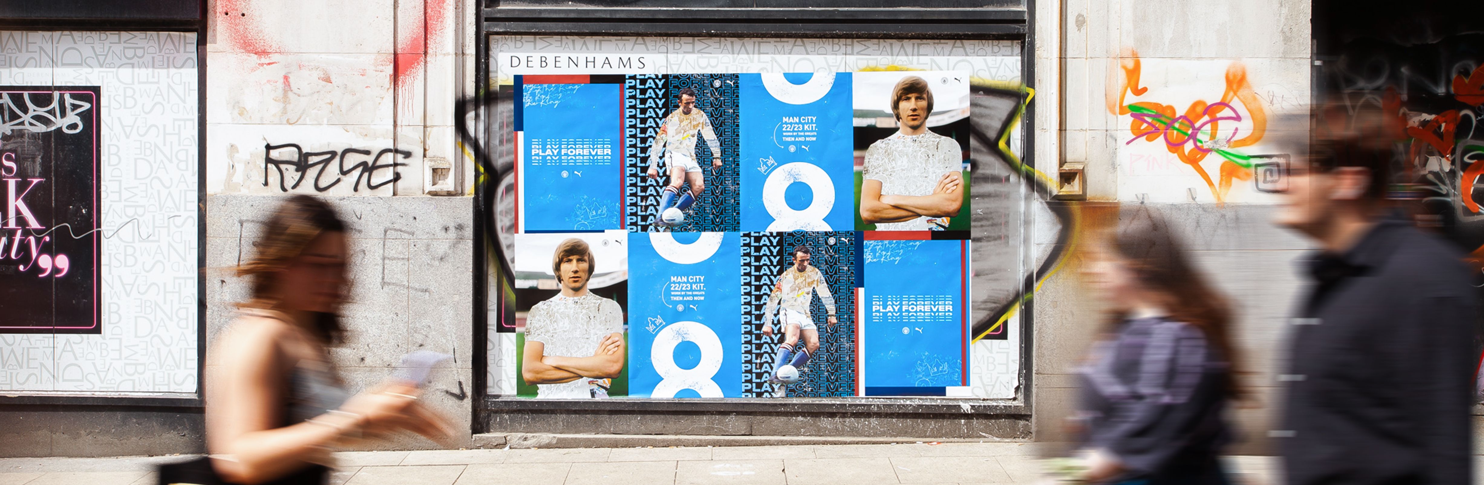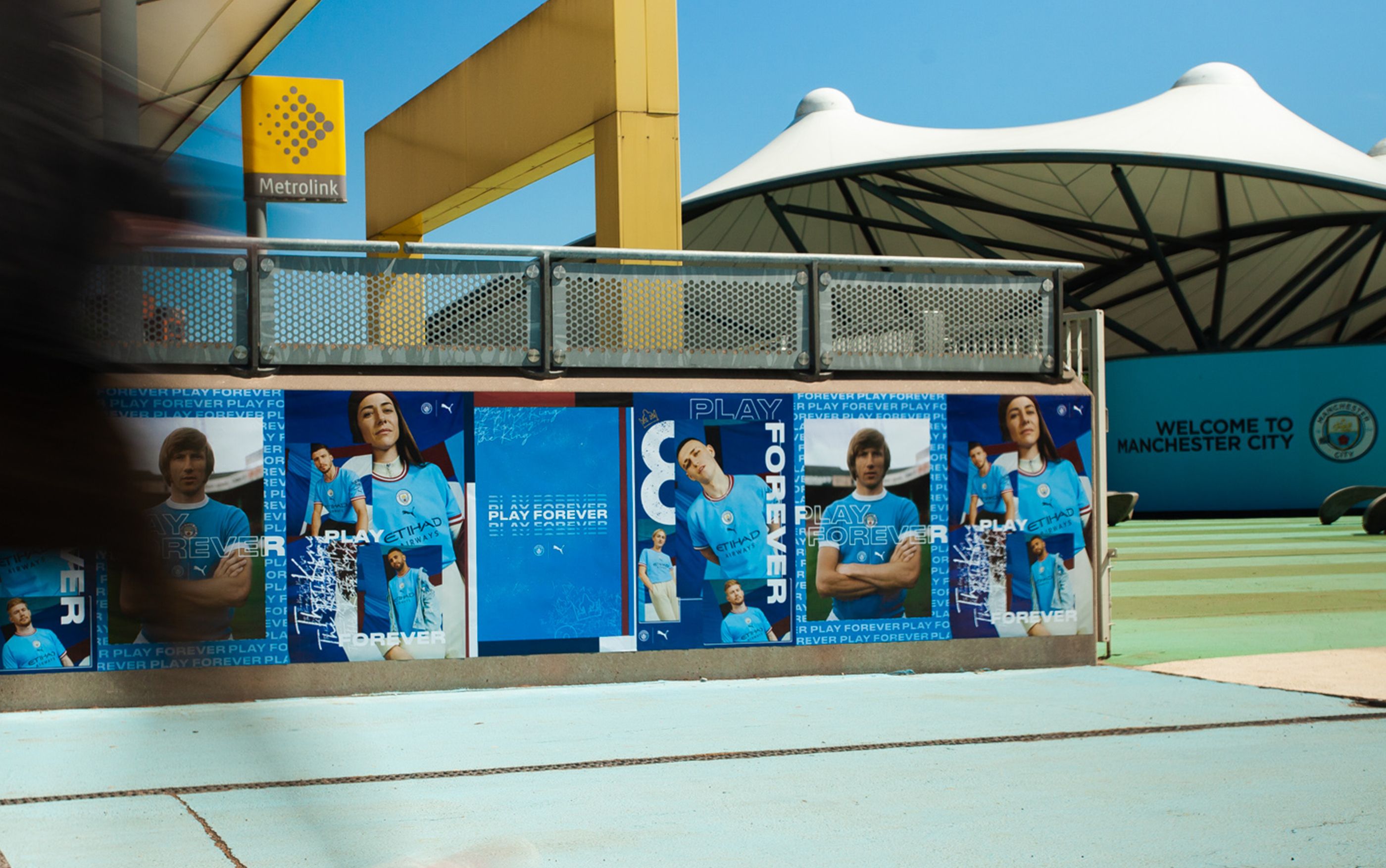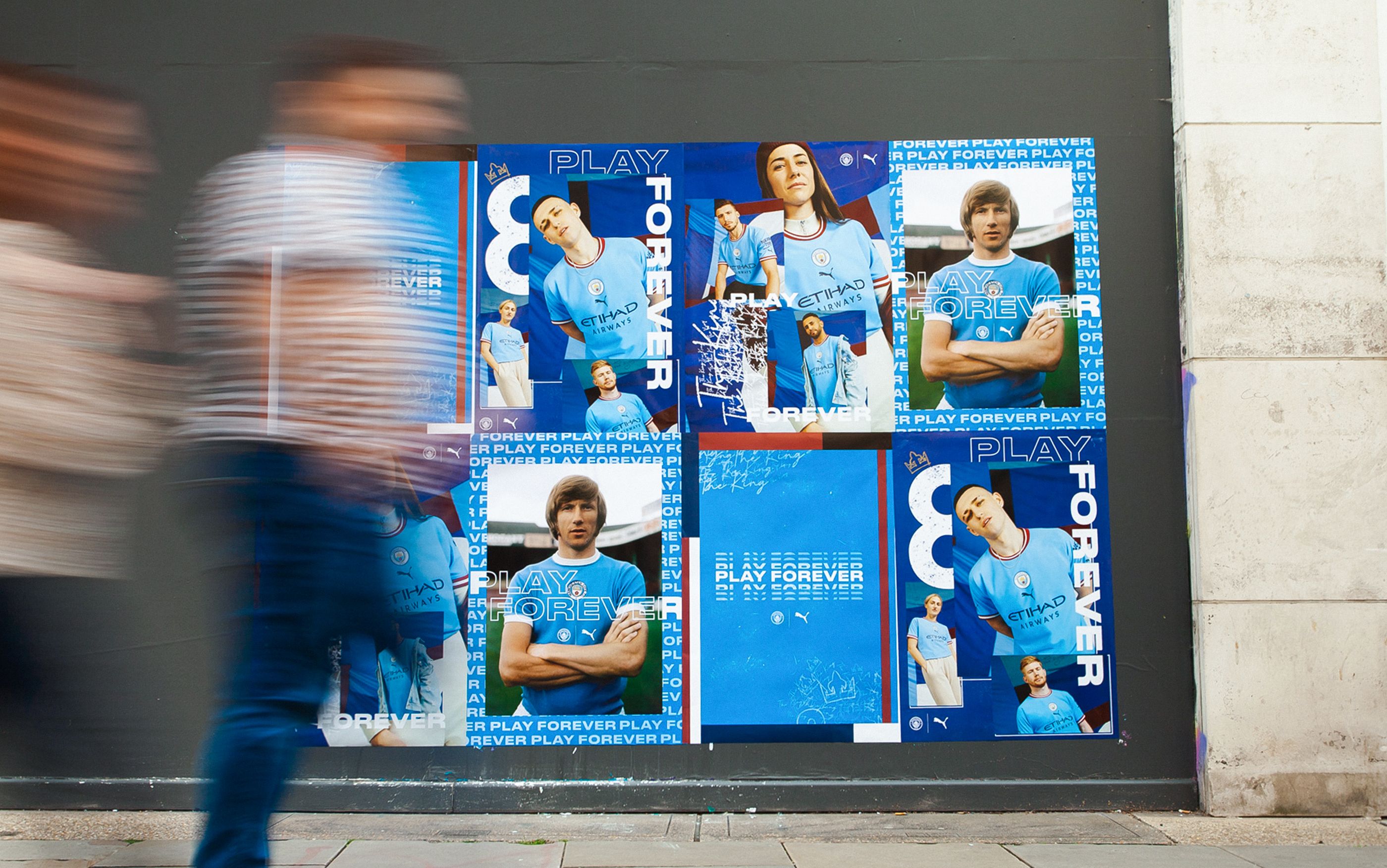 We created ‘Borrowed From the Past,’ the first kit launch without a kit, placing posters showing Colin Bell and other iconic City players with their shirts removed, creating intrigue among younger fans and teasing the inspiration for the upcoming shirt design.