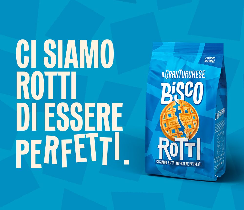 That’s why we create the new BiscoRotti. A new limited edition of the classic GranTurchese. Imperfect biscuits that turn a production flaw into a message against waste, while celebrating uniqueness and inclusivity.