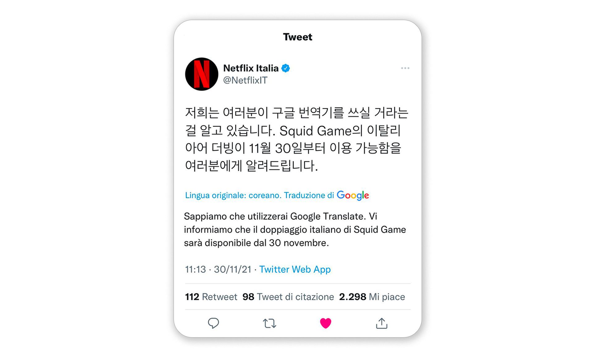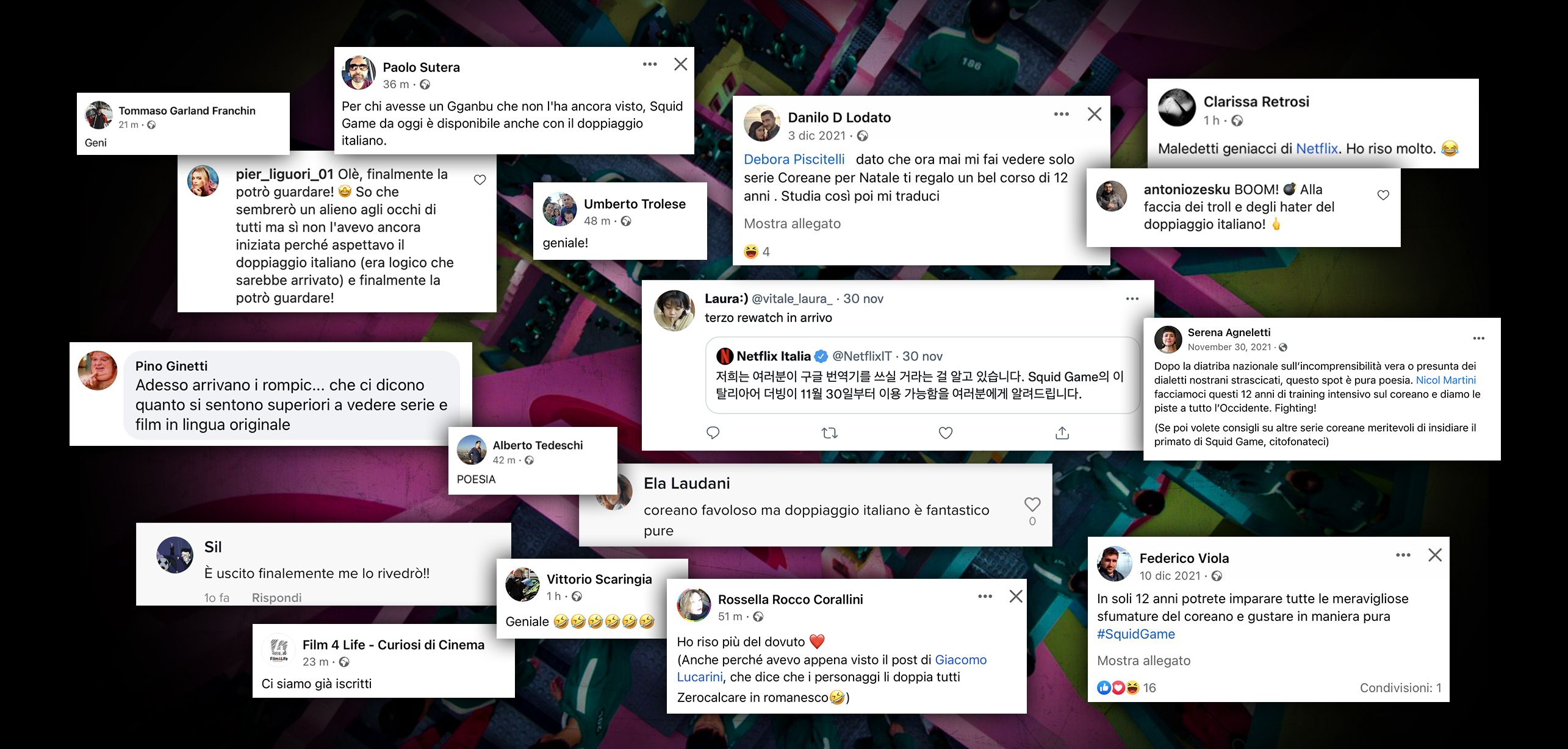When Squid Game launched in Italy, the Italian version was not available, which caused a bit of a stir among Netflix users. So, when the time came to communicate the arrival of the Italian dubbing, we did it the Korean way.