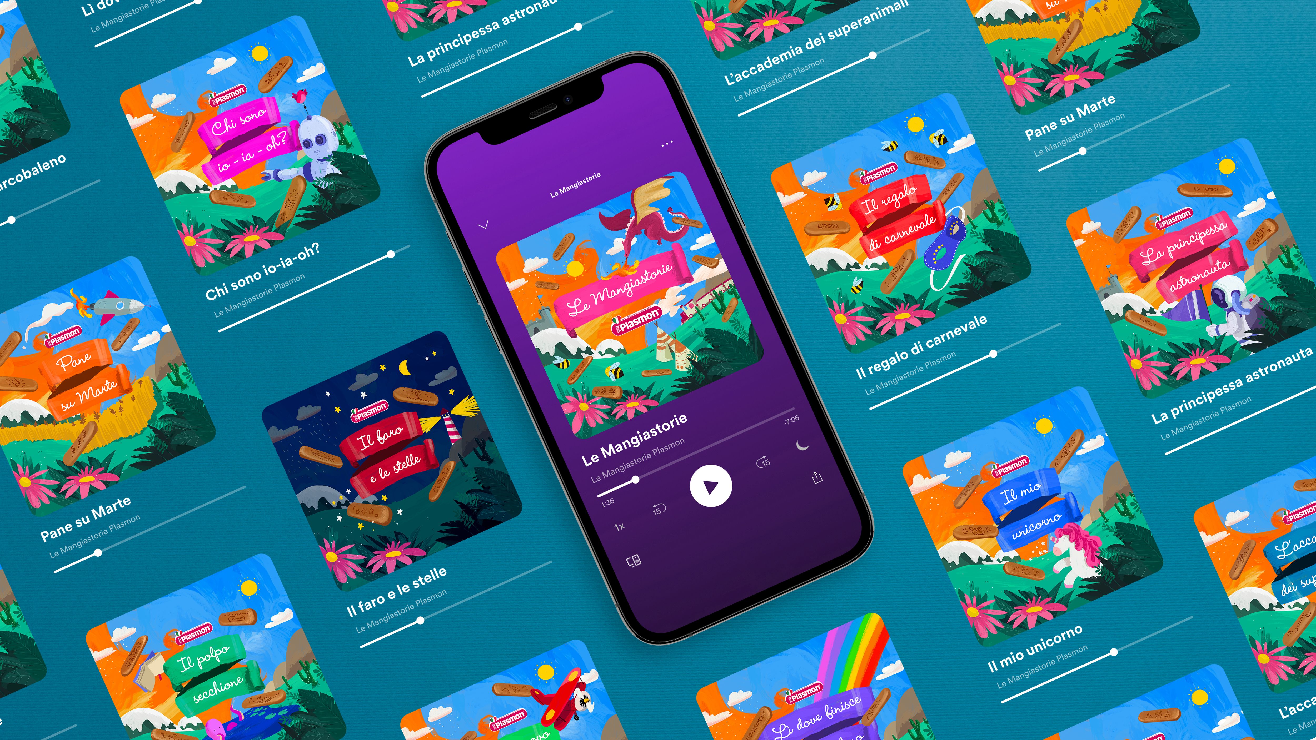 We took ten stories born from Mangiastorie and we rewrote them with a book author, Lorenza Bernardi, to transform them into a podcast for children, sharing special topics like: respect, gender equality, sustainability, bullying, friendship, charity, self-love, big dreams.