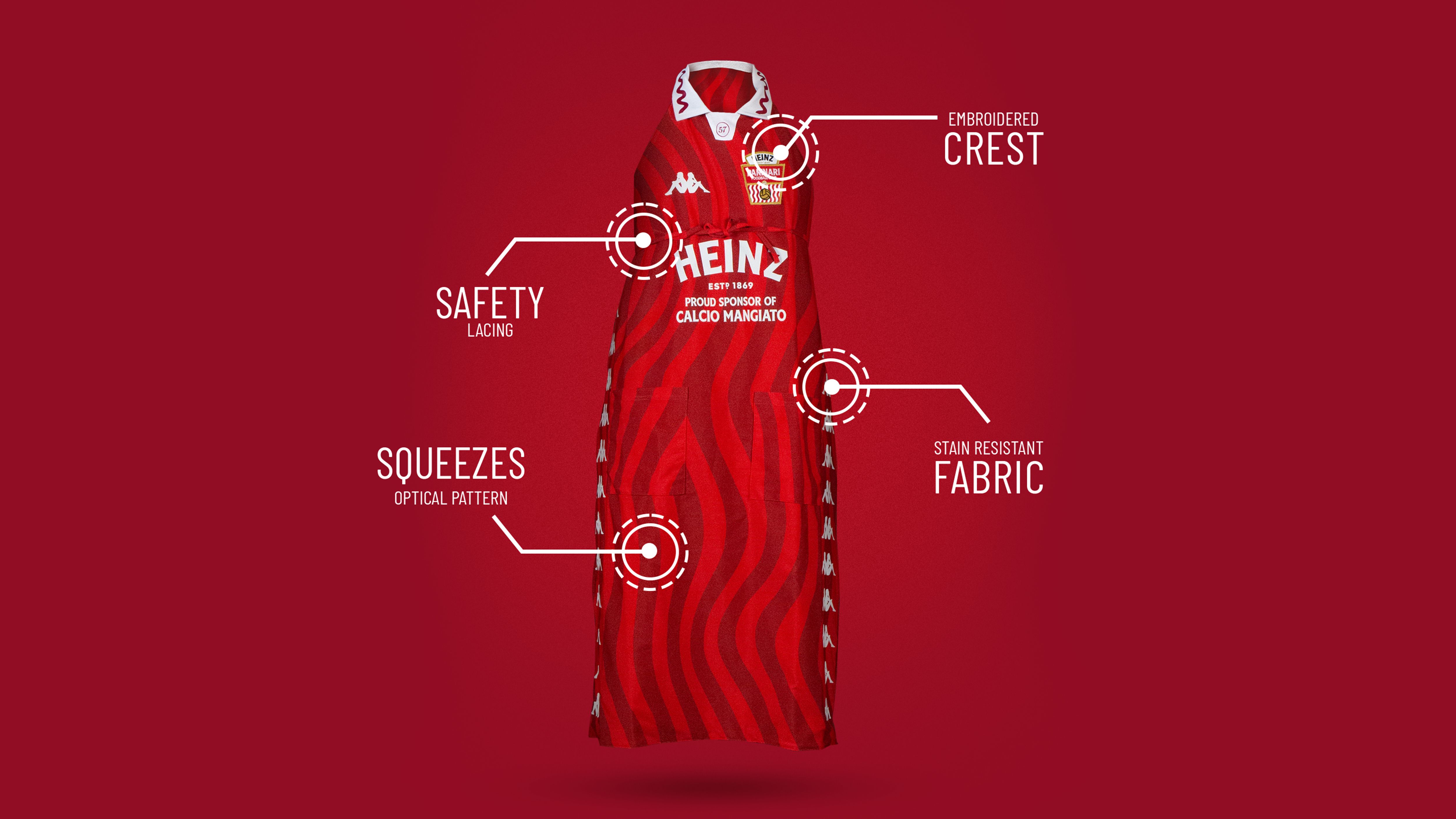 Every football hero has a jersey that made him immortal. That’s why Heinz partnered with Kappa to create the first technical apron for the newly formed “Paninari Foodball Club”.