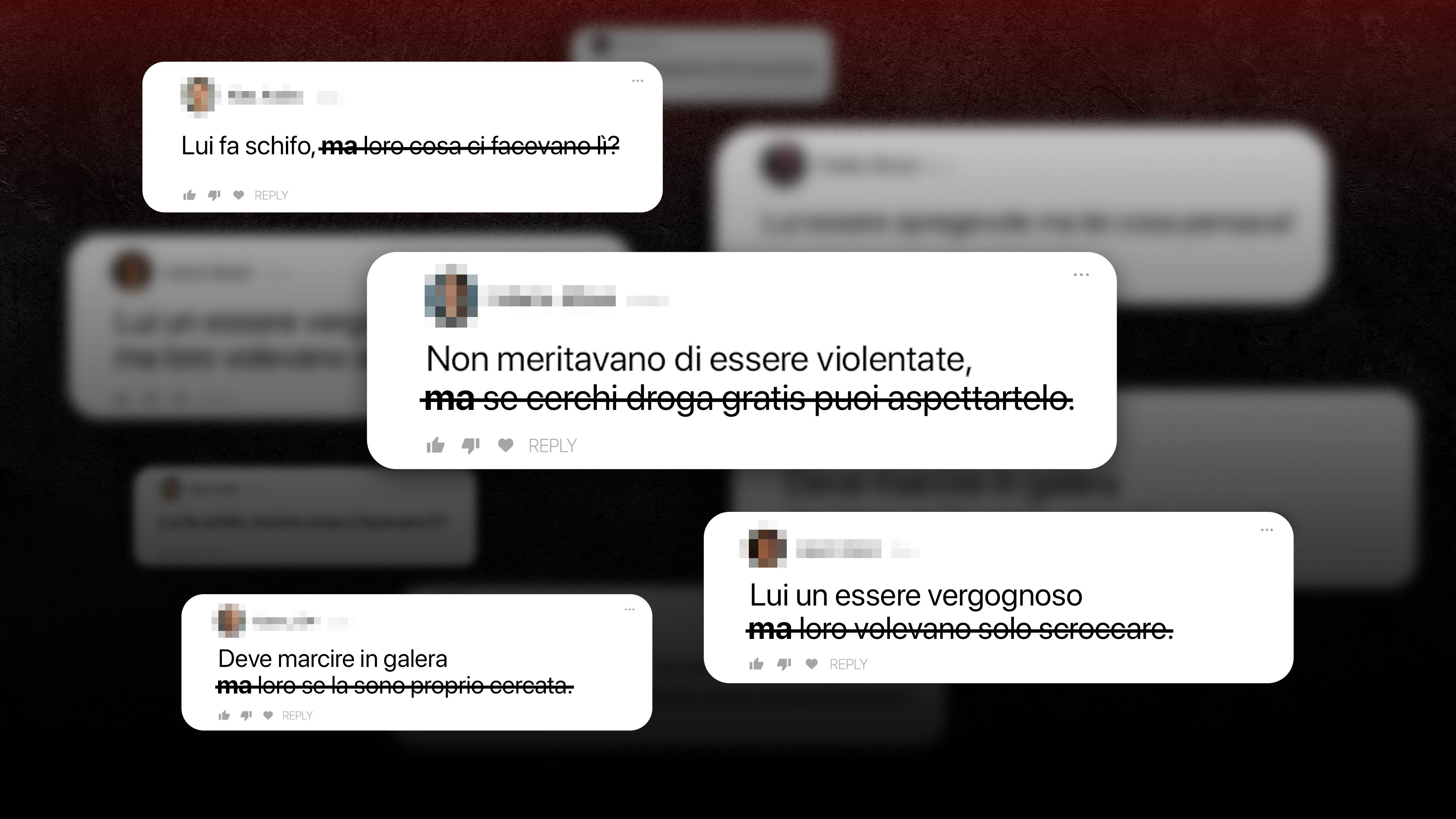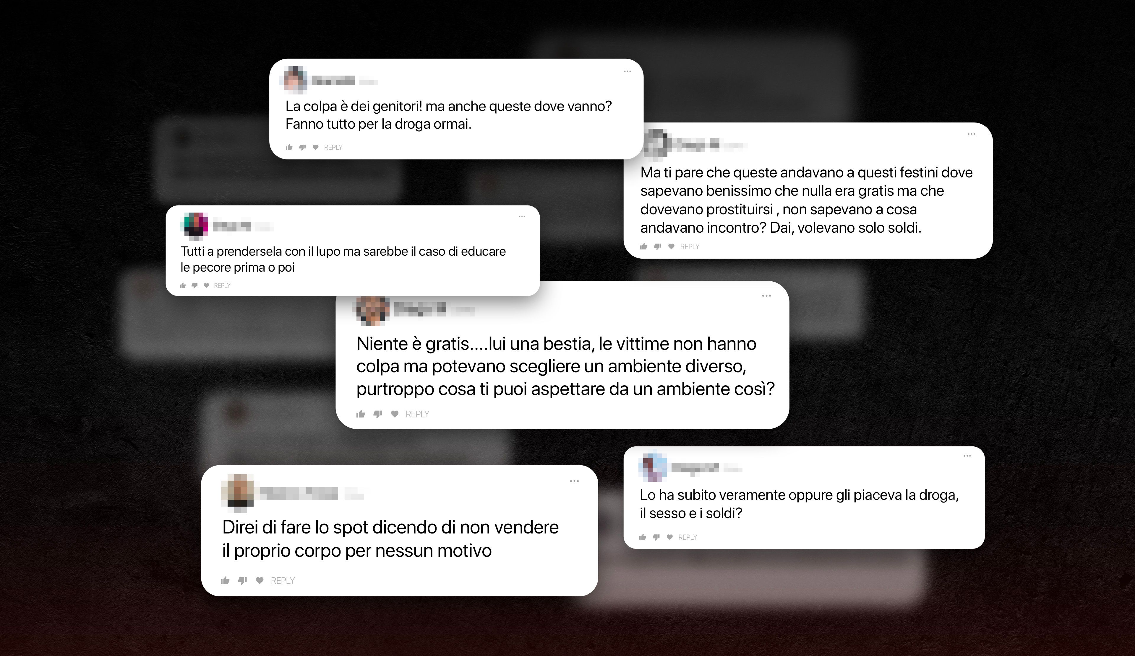 Terrazza Sentimento is a Netflix documentary on the dramatic case of Alberto Genovese, a Milan entrepreneur who assaulted young women during his exclusive penthouse parties. Beyond exposing the brutality of the crime, the series also explores how media and society turned their gaze against the victims, fueling a new form of violence: victim blaming. And this portrayal immediately proved accurate when we analyzed comments under news articles, finding a clear pattern: many begin by condemning the abuser and then, after a “BUT,” shift the blame onto the victims.